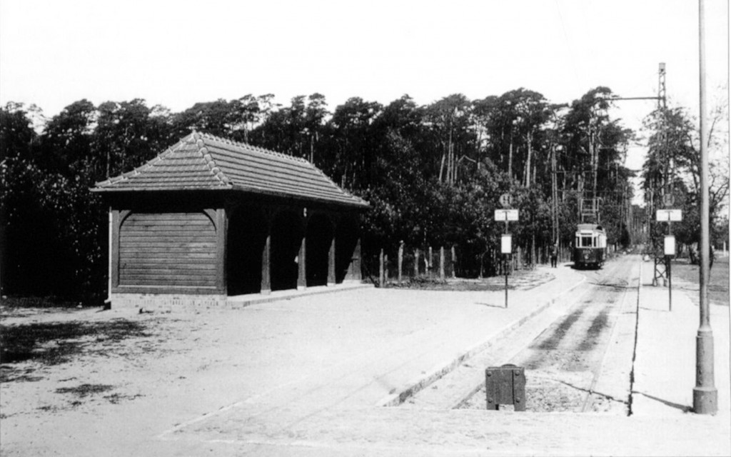 StartseiteAllgemeinHaltestelle am Bahnhof Rehbrücke im Jahre 1936