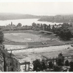 Nochmal das Thälmann-Stadion um 1950. Im Vordergrund die Reste des Stadtschlosses und der Paradeplatz. Die Breite Str in der heutigen Form gab es noch nicht. — Keine Kommentare